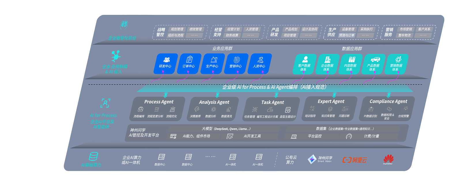 非凡国际问学智车解决方案是一套基于AI技术的汽车行业智能化系统,,覆盖从底层算力到顶层AI应用的全栈方案。。方案由算力层、、模型层和应用层组成:算力层,,,方案支持多种一体机配置,,,具备云端灵活部署、、多云适配以及动态优化计算资源的能力;模型层,,,非凡国际问学平台版提供了企业级AI应用一站式构建与管理平台,,支持基于后训练强化技术的汽车企业专属模型的训练、、评测和运营;应用层,,非凡国际问学DeepSeek版提供包括超级员工、、、智能招采、、智能营销、、、智能客服、、AI for BI等一系列解决方案,,可助力汽车行业实现数字化转型,,让管理更智能、、、、响应更敏捷。。